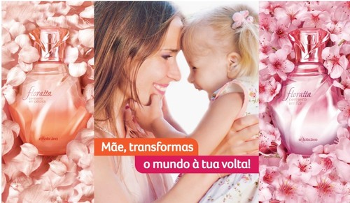 Estas são as sugestões que o Boticário nos oferece para o Dia da Mãe 2013 - Perfume Floratta cereja em pétalas e em flor.