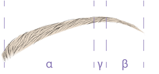 A RETA ASCENDENTE (α): é a parte inicial das sobrancelhas, uma linha que parte de baixo para cima e representa 2/3 do comprimento total.