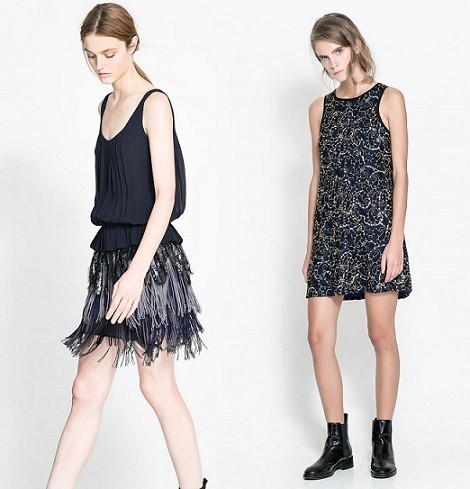 Aqui ficam mais umas sugestões de vestidos que a Zara lançou especialmente para esta época especial da passagem de ano. As cores tendência, como já vos mostrei em coleções de vestidos anteriores são os tons escuros como o preto e azul marinho com pormenores brilhantes, lantejolas e apliques de missangas.