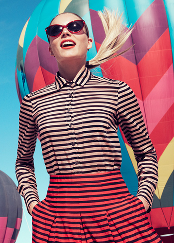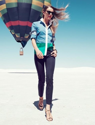 As riscas, a predominância do preto e branco conjugado numa camisa fresca com padrão às bolinhas, o pormenor da mala em tom pastel e até mesmo o metal reluzente nas sandálias. Esta campanha na minha opinião não está muito extensa, mas os hit's desta estação Primavera Verão 2013 estão bastantes salientes neste Catálogo.